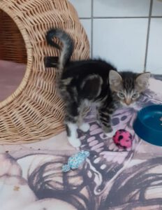 Sie sucht ein neues Zuhause in Wohnungshaltung als Zweitkatze. Rita ist verspielt und muss noch einiges lernen. Sie sollte zu einem freundlichen Jungtier oder einer nicht dominanten erwachsenen Katze.