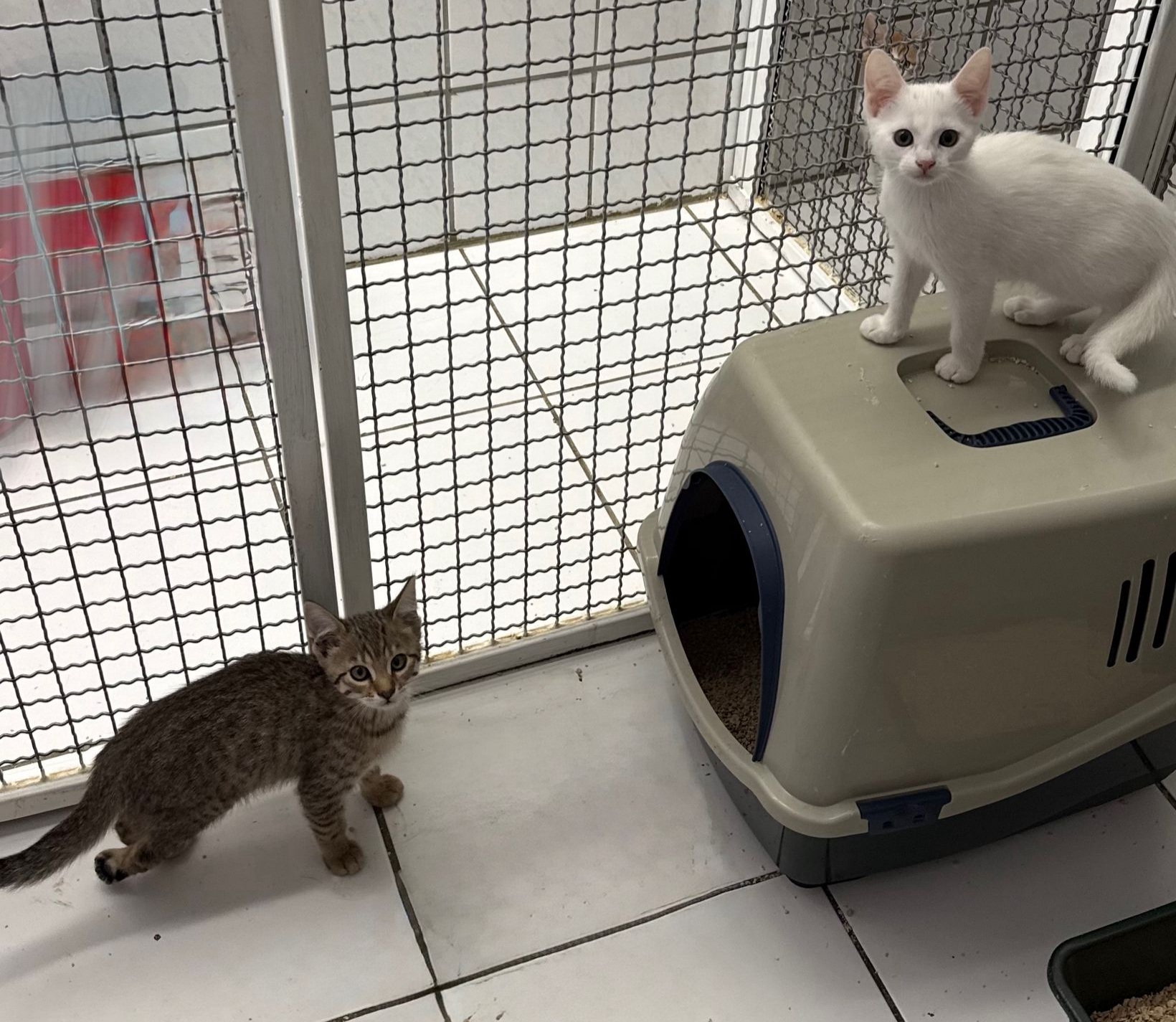 Bruder (getigert) und Schwester (weiß) suchen gemeinsam ein neues Zuhause in Wohnungshaltung. Vermittlung nur zusammen. Sie sind sehr verspielt, neugierig und frech.