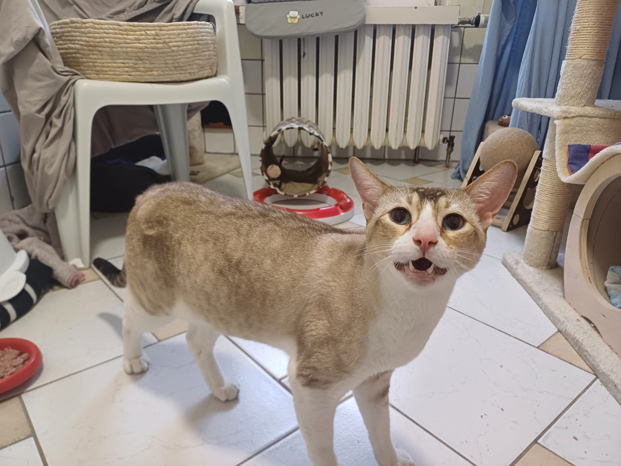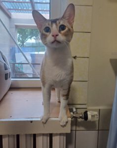 Vorhang auf für unseren Simba. Er ist ein Bengal-Abessiner-Mix. Er ist extrem menschenbezogen und braucht in seinem neuen Zuhause in Wohnungshaltung definitiv jemanden der sehr viel Zeit für ihn hat. Wenn er lange alleine ist, reagiert er darauf sehr empfindlich. Er wird unsauber, ruft nach seinen Menschen und wird panisch. Menschen die Vollzeit arbeiten gehen sind nichts für Simba. Er braucht wirklich eine eins zu eins Betreuung mit Menschen, die sich ganz viel mit ihm beschäftigen. Wenn Simba sehr unzufrieden ist, bekommt er Blasenprobleme. Zur Unterstützung bekommt er bei uns Zusätze mit ins Futter. Die nimmt er ohne Probleme. Unverträglichkeiten sind nicht bekannt. Er ist ca. 2022 geboren.