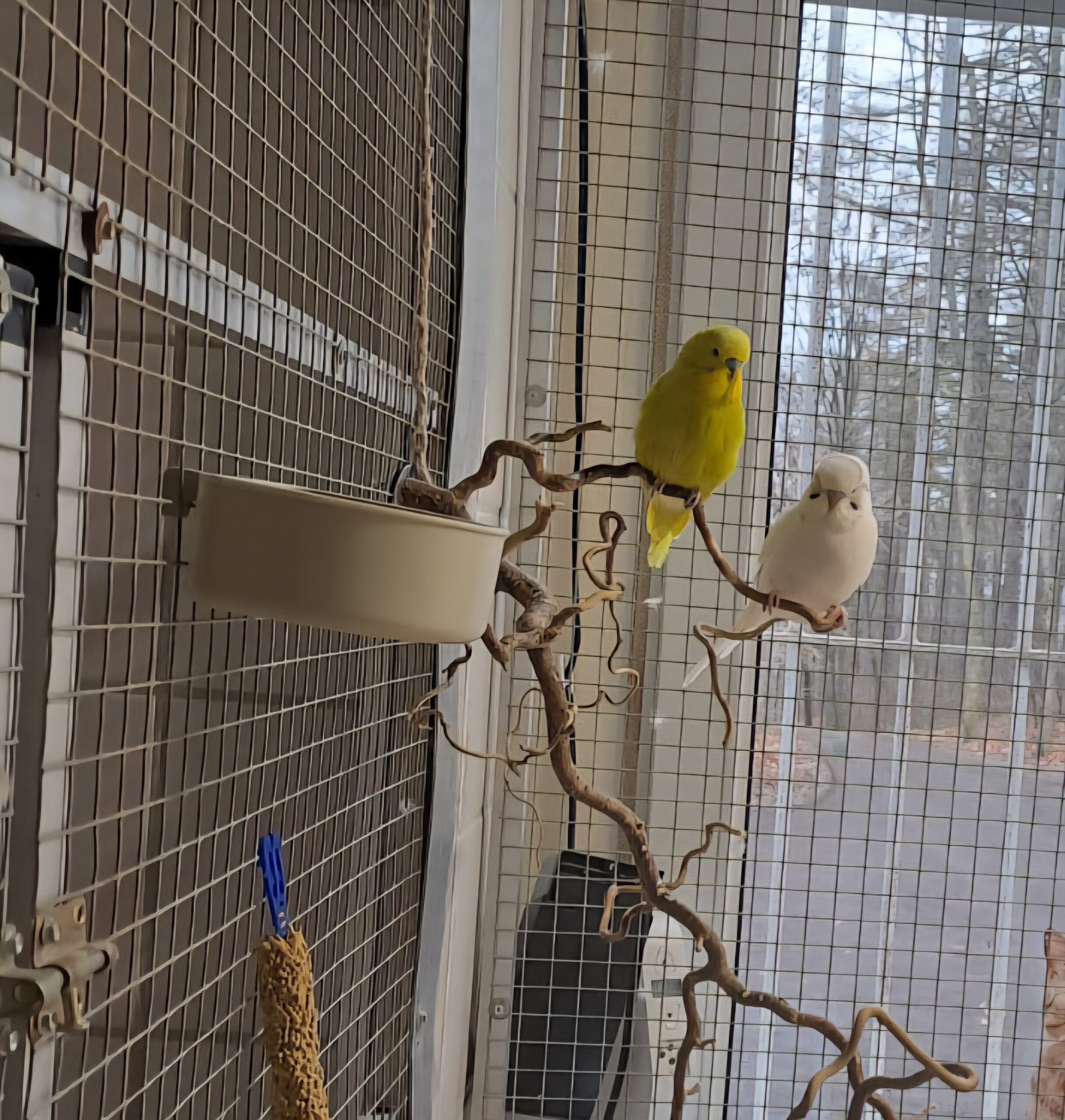 Micky (weiß) ist im November 2021 geboren und Bubi (gelb) im März 2024, beide suchen gemeinsam ein neues Zuhause in artgerechter Haltung.