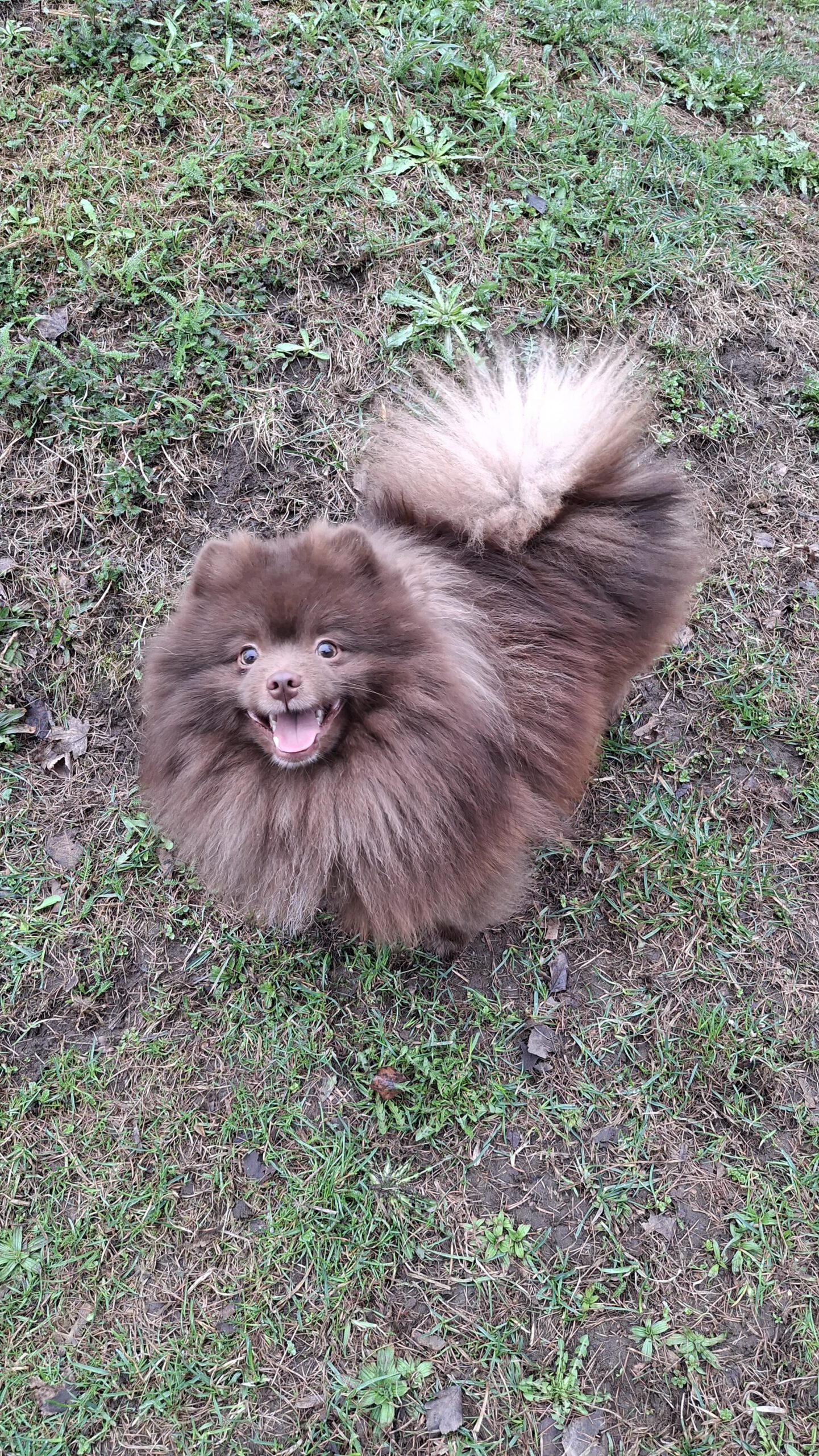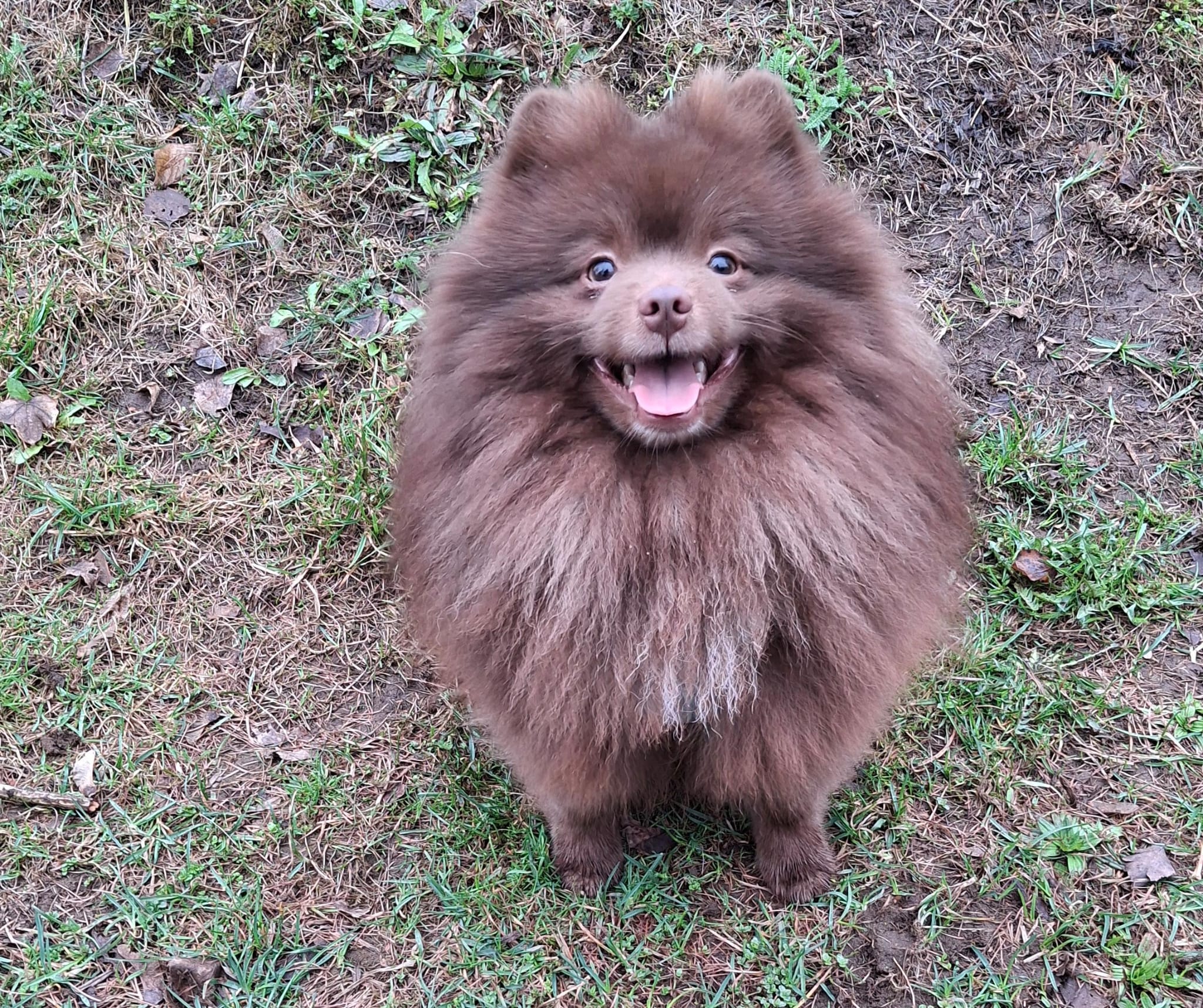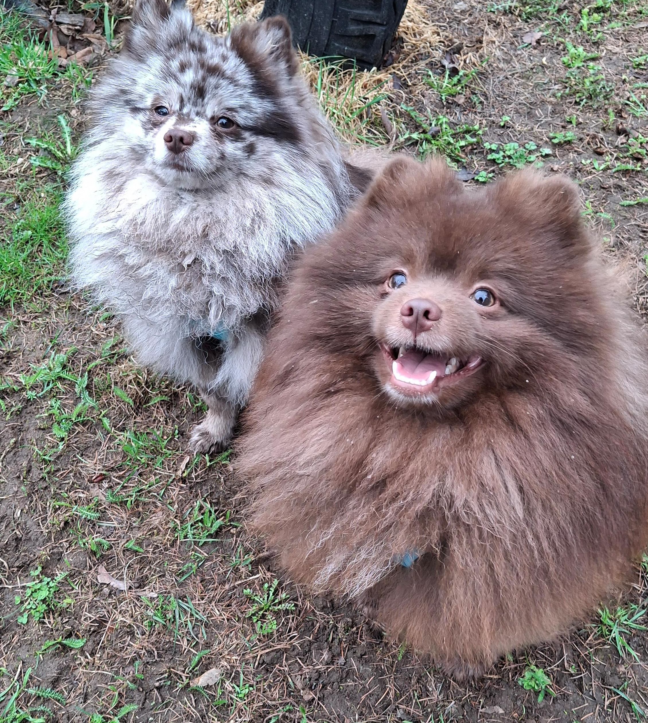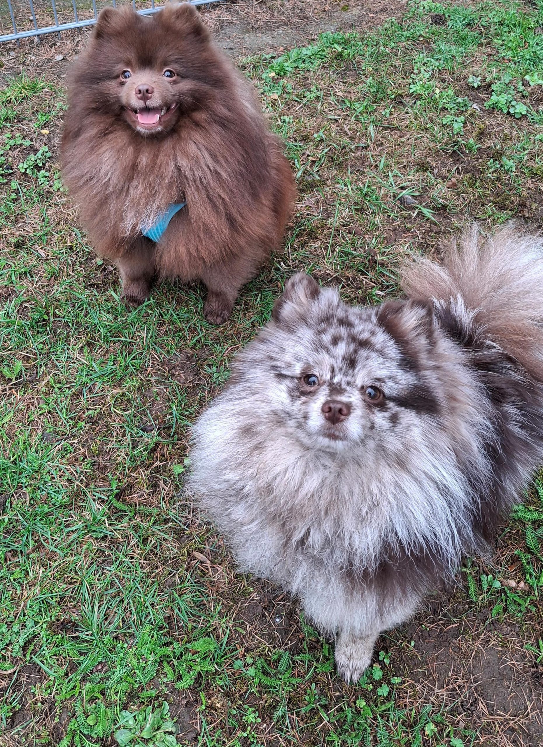 Die beiden Zwergspitzbrüder Jimmy (merle farbend) und Lucky (braun) wurden im Oktober 2024 geboren.